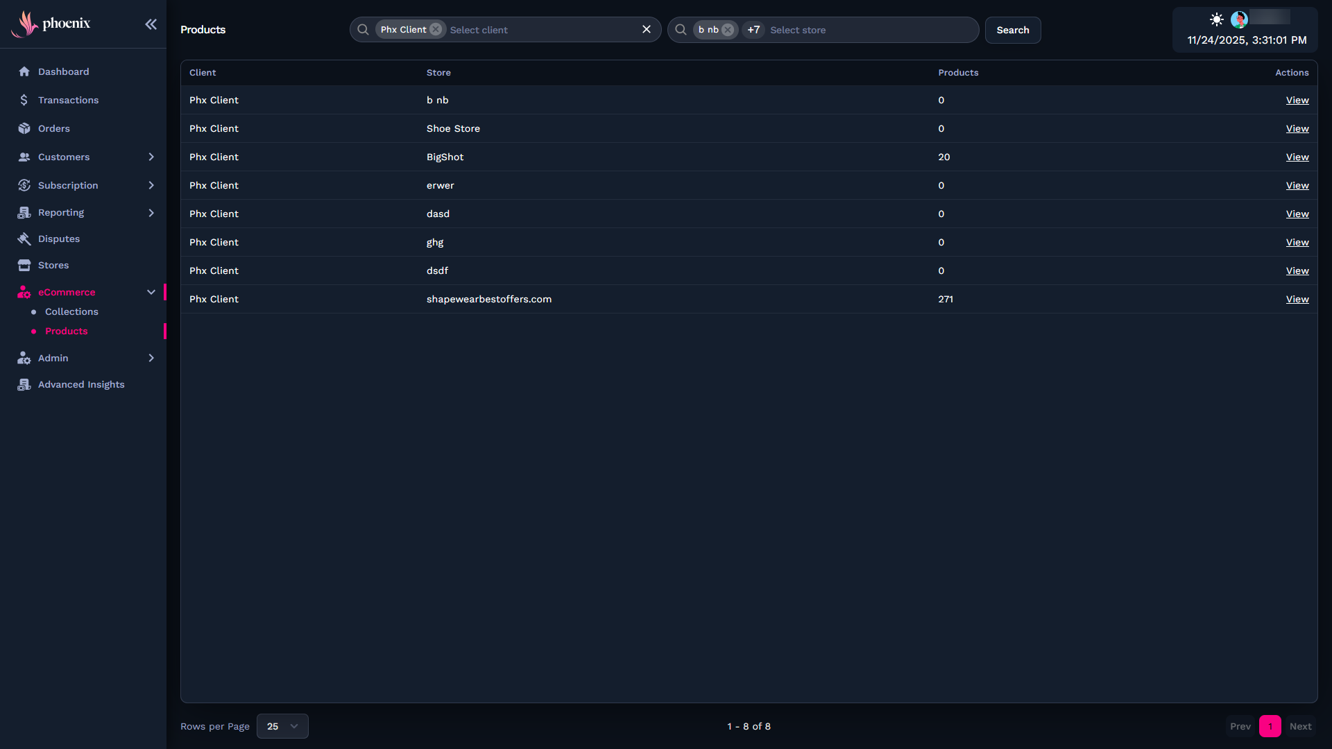 The Phoenix Dashboard is your central workspace for managing payments, subscriptions, customers, stores, and analytics. You use it to track performance, solve customer issues, and take action quickly across your commerce environment.